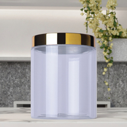Frasco de plástico grande de lujo para mascotas, tarro exfoliante cosmético transparente, tarros de plástico para crema con tapa dorada plateada y dorada